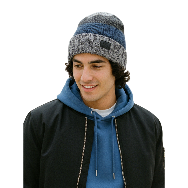 Cuffed beanie in a color block design. The tweed look comes from blended wool yarns and the style is fully lined in S³ Super Soft fleece.